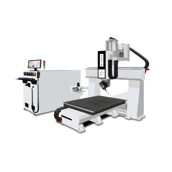 A compact CNC machining center designed for precision manufacturing of small to medium-scale prototypes, models, mold-making tools, and processing composite materials and plastics. This mini version offers specialized configurations for producing stairs and decorative elements as well. Featuring a robust gantry structure, it efficiently confines the processing area, ensuring effective removal of dust and chips during cutting. This design also prioritizes ease of loading and unloading workpieces and parts. The machine delivers exceptional precision and performance in a compact footprint, providing flexibility with various processing zones.